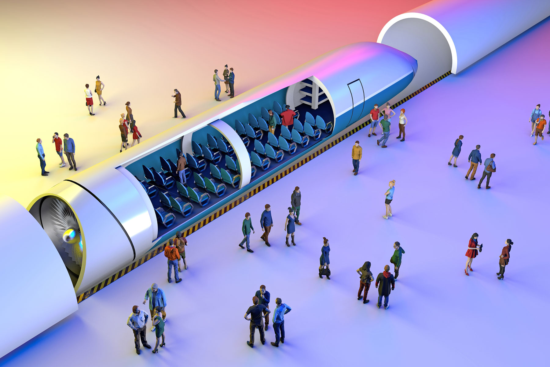 The concept operates by sending specially designed capsules (train) trough a tube maintained at a partial vacuum. By reducing air resistance to a minimum, the train can operate at a speed between 900 – 1200km/h. As a result, short to medium distance flights can be replaced by the Hyperloop and reduce emissions up to 95%. Autonomous vehicles controlled by the smartest technology will create a network of safe tubes secure from changeable weather and any disturbance from the outside world.